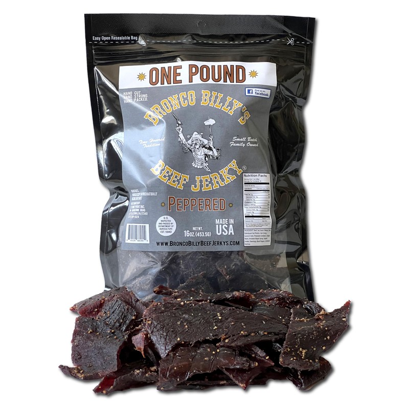 Bronco Billy's Beef Jerky Maple Peppered One Pound Resealable Bag, Made in USA with USDA Beef, Real Maple Syrup, Cracked Black Pepper