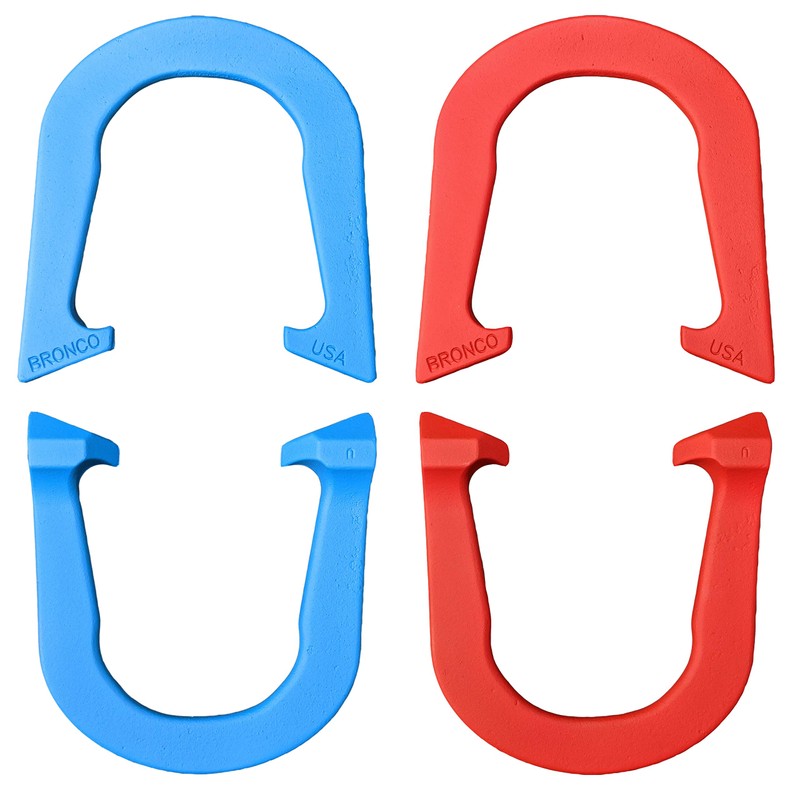 Bronco Professional Pitching Horseshoes- Made in The USA (Red & Blue- Two Pair Set (4 Shoes))