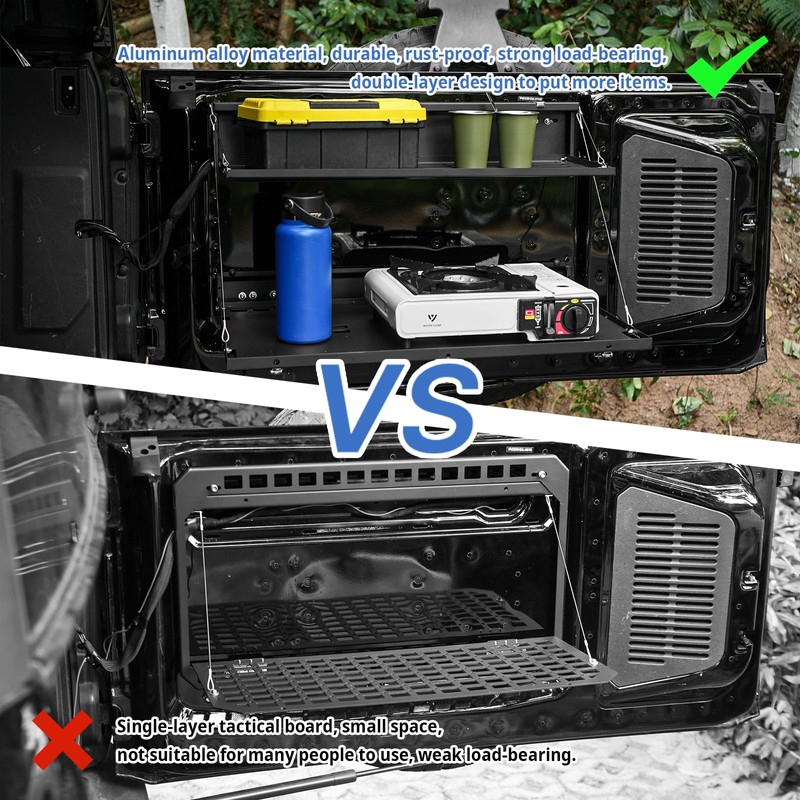 - Versatile Design: This double-layer tailgate workbench provides additional workspace for easy tool storage and operation during outdoor activities, field adventures or daily use.