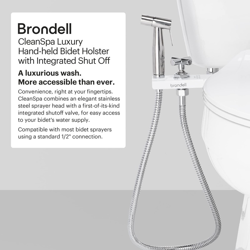 - LUXURY WITHIN EASY REACH: The CleanSpa Luxury Handheld Bidet Sprayer Kit with Holster and Integrated Shut Off brings convenient cleansing to any toilet; With dual spraying options & a stainless-steel side arm holster, your perfect wash is always in reach