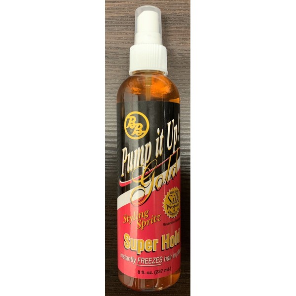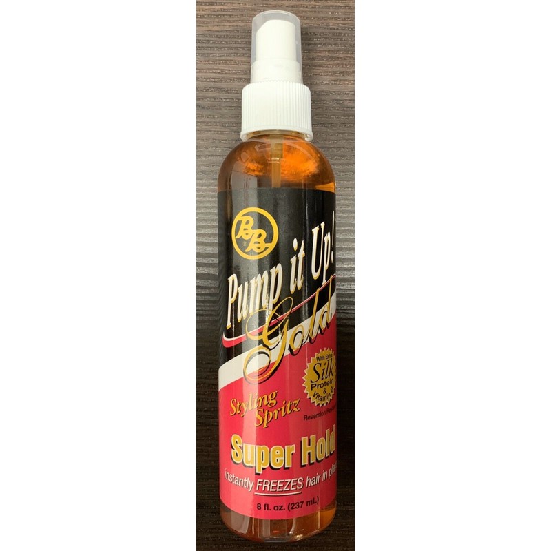 BB Pump It Up Gold Super Hold Styling Spritz Finishing Styling Shape Hair Spray 8,oz. Condition is New. Shipped with USPS First Class Package.