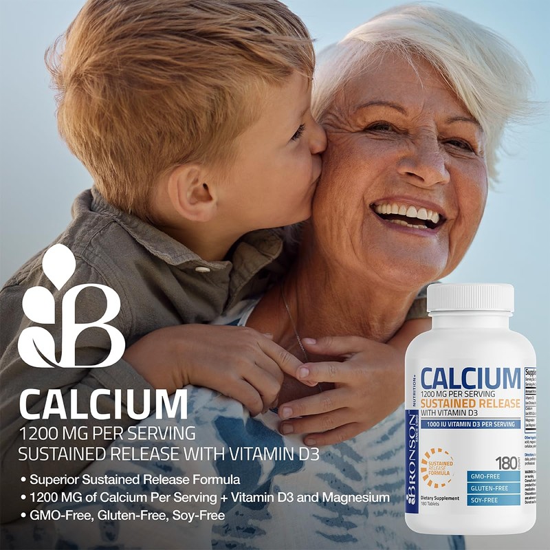 - Sustained Release Calcium Tablets: Bronson Calcium Sustained Release provides 1200 MG of Calcium per serving plus Vitamin D3 and Magnesium. Our Sustained Release formula slowly releases over time to provide a steady balance of Calcium throughout the day.*
