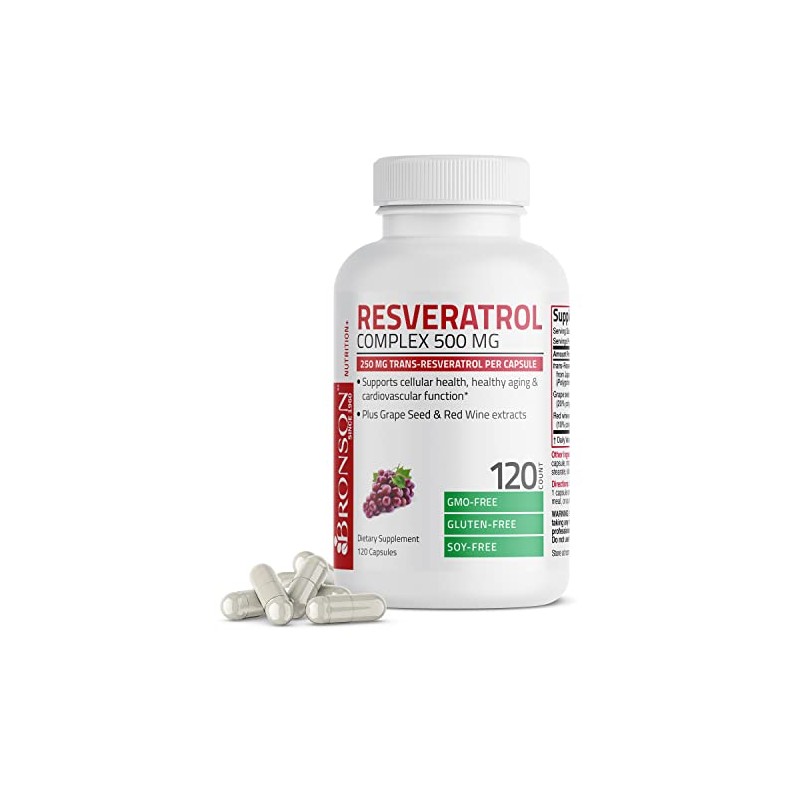 Bronson Resveratrol Complex 500 mg 120 Cpsulas - Cardiovascular - Antioxidante - Cerebral - Piel - Hecho en USA