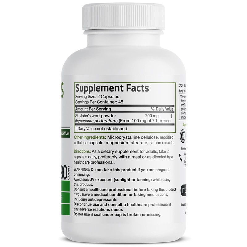 - Healthy Mood Support: Bronson St. John’s Wort provides 700 MG of St. John’s per serving (from 7:1 extract) to support a healthy mood.* St. John’s Wort 700 MG is Vegan/Vegetarian friendly and contains no ingredients derived from animals.
