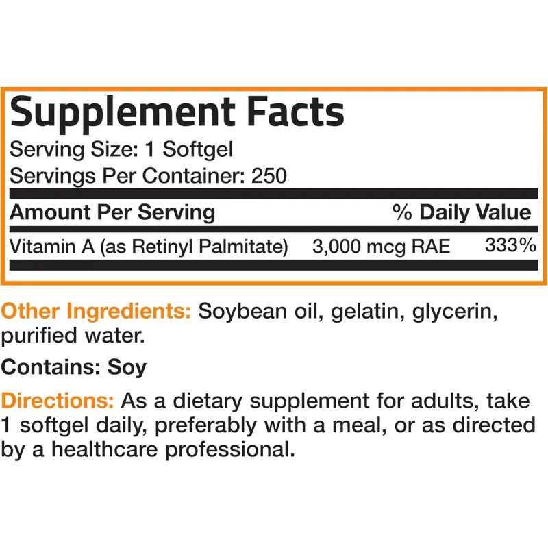 Bronson Vitamina A Salud Ocular 10,000iu 250 Capsulas V2 Sin Sabor