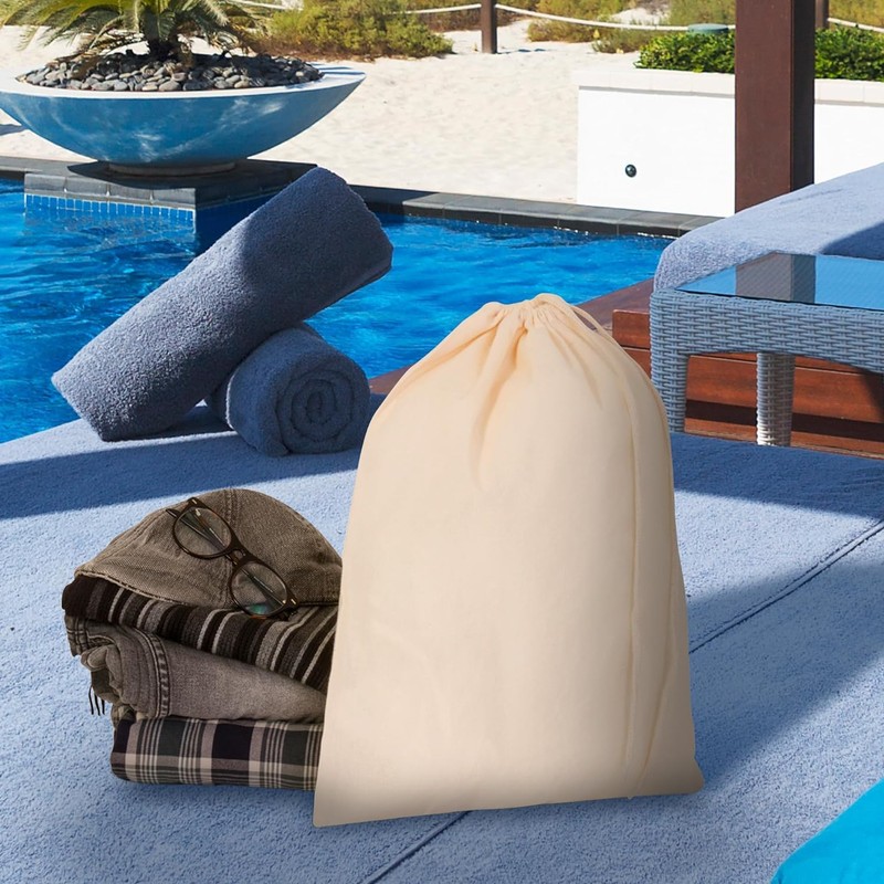 Bronta Mill Plain Natural 100% Cotton Drawstring Stuff Bags | Eco Friendly Storage Pouch | Beige - L - 50cm x 40cm