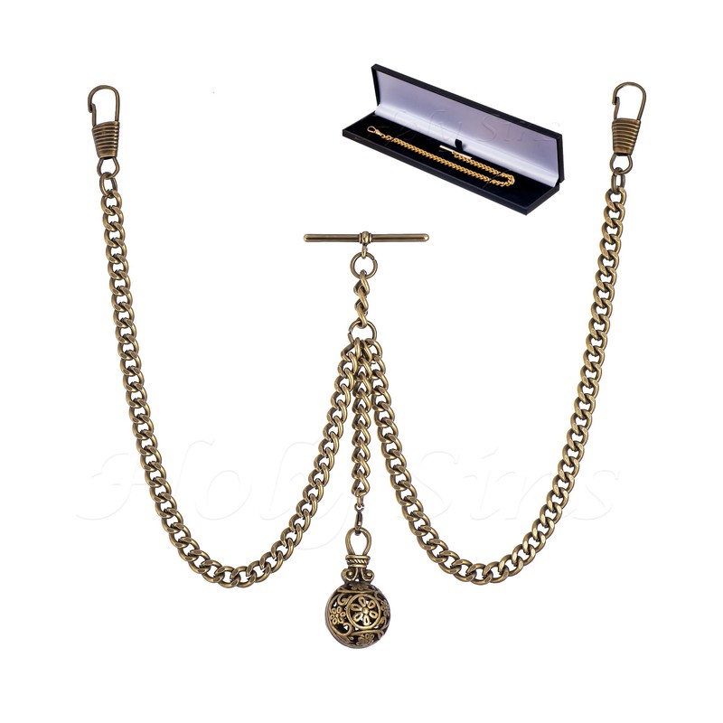 Bronze Colour Double Albert Pocket Watch Chain With Hollow Pendant 008-B (8")