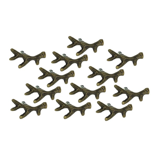 Set of 12 Bronze Finish Cast Iron Small Deer Antler Cabinet Handle Drawer Pulls - Rustic Wildlife-Inspired Hardware for Western Lodge and Southwest Home Decor