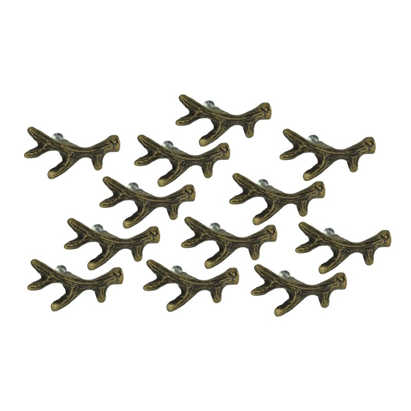 Furniture pulls are a quick and easy way to update the look of your decor and bring a decorative touch to any room, or multiple rooms, and you will give any room an instant style upgrade with this 12 piece set of mini deer antler handles. Made of durable cast iron, the pulls are perfect for dresser, nightstand and end table drawers or cupboard, cabinet and closet doors and so much more. They're easy to attach with just a single screw, and the hardware is included. The antique bronze painted finish has been given a distressed look with a wonderfully weathered patina and an elegant appearance perfectly suited for most any rustic, Southwest or lodge inspired home. Measures 2.25 inches long, 1.25 inches high with a 1.375 inch projection.