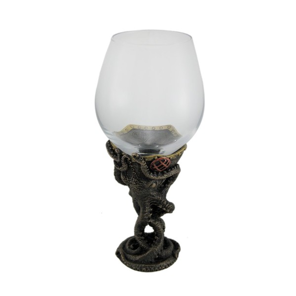 Bronze Finish Steampunk Deep Sea Diver Octopus Wine Glass
