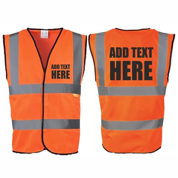 Brook Hi Vis, ORANGE Hi Vis Safety Vest Custom Printed Waistcoat, Personalise Front and Back, Brand Your Company Logo, X Large