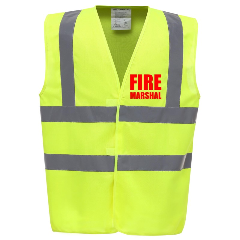 Brook Hi Vis UK Big Logo Fire Marshal Premium Yellow Hi Vis Vest - High Visibility Safety Waistcoat with Reflective Bands, Company Compliance and Event Staff, Alpha, XL, Regular, Regular, Yellow