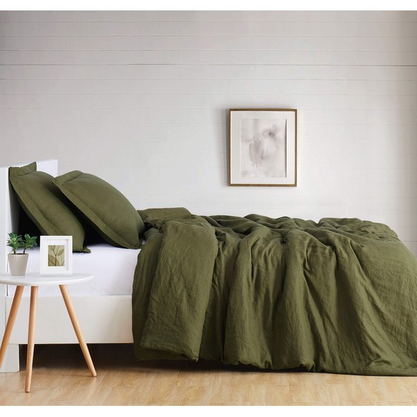 • Brooklyn Loom Flax Linen Olive Green Full/Queen 3 Piece Duvet Set