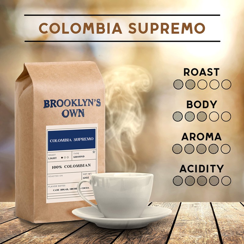 Brooklyn's Own Light Roast Colombia Supremo Ground Coffee - 100% Colombian Grounds