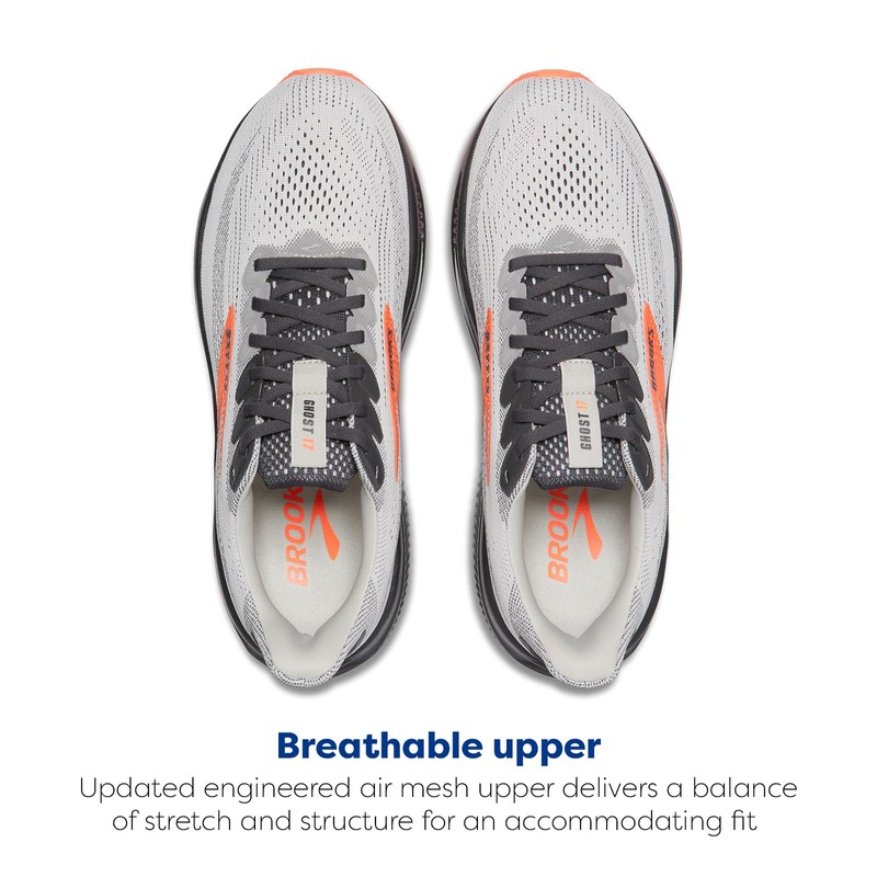 Brooks Men’s Ghost 17 Neutral Running Shoe - Oyster Mushroom/Orange/Ebony - 15 Medium