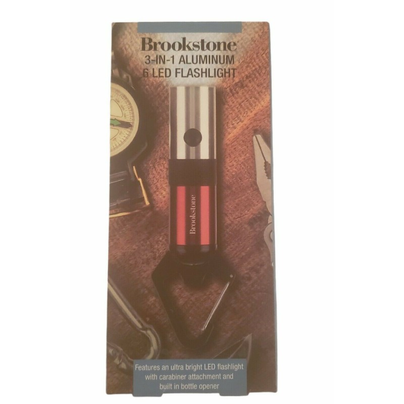 Brookstone 3-in 1 Aluminium 6 LED Flashlight with Carabriner and Bottle Opener New in Box