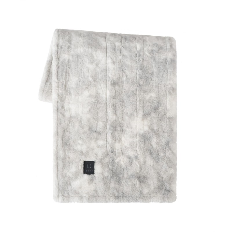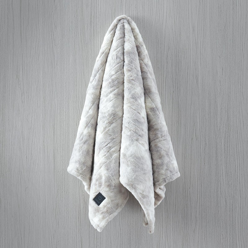 Brookstone Heated Throw Blanket - Heat Blankets Electric - Faux Fur Heated Throw Blanket- 4 Heat Settings, 4-Hour Auto Shut Off, 100% Polyester, 50"x60" - Ivory Marble