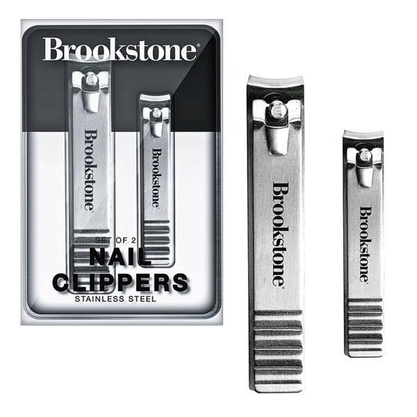 Brookstone Nail Clippers for Men and Women - Premium Stainless Steel Nail Clipper and Nail Cutter, Precision Grooming Set Includes Two Nail Clippers and Case