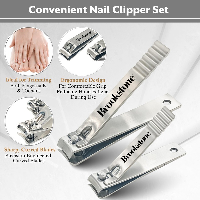 Brookstone Nail Clippers for Men and Women - Premium Stainless Steel Nail Clipper and Nail Cutter, Precision Grooming Set Includes Two Nail Clippers and Case