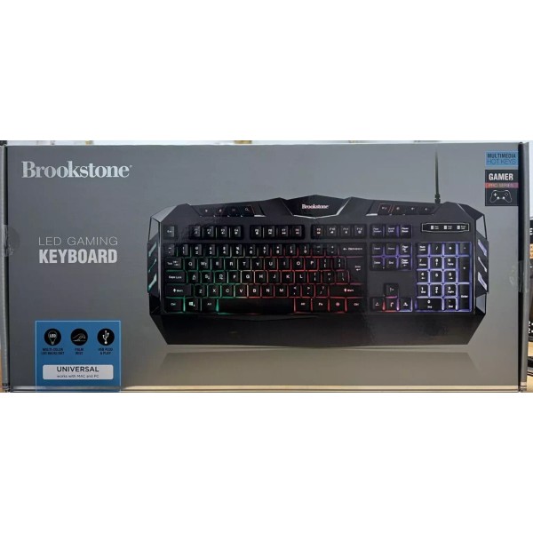 Brookstone USB Wired Gaming Keyboard with Multi-Color LED Backlit Keys