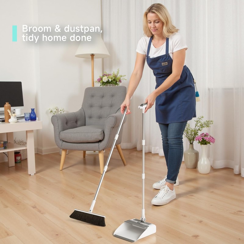 - Seamless Floor Contact with TPR Rubber Edge: The TPR rubber edge on the dustpan ensures close contact with the floor, leaving no dust or debris behind. Suitable for various floor types including tile, hardwood, and laminate.