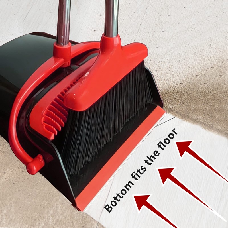 - ☘[Fits seamlessly into the floor] - The rubber lip on the front of the dustpan is flush with the floor, so all debris and trash can easily go into the upright dustpan. Sweeping without dust. Cleaner and more efficient cleaning.