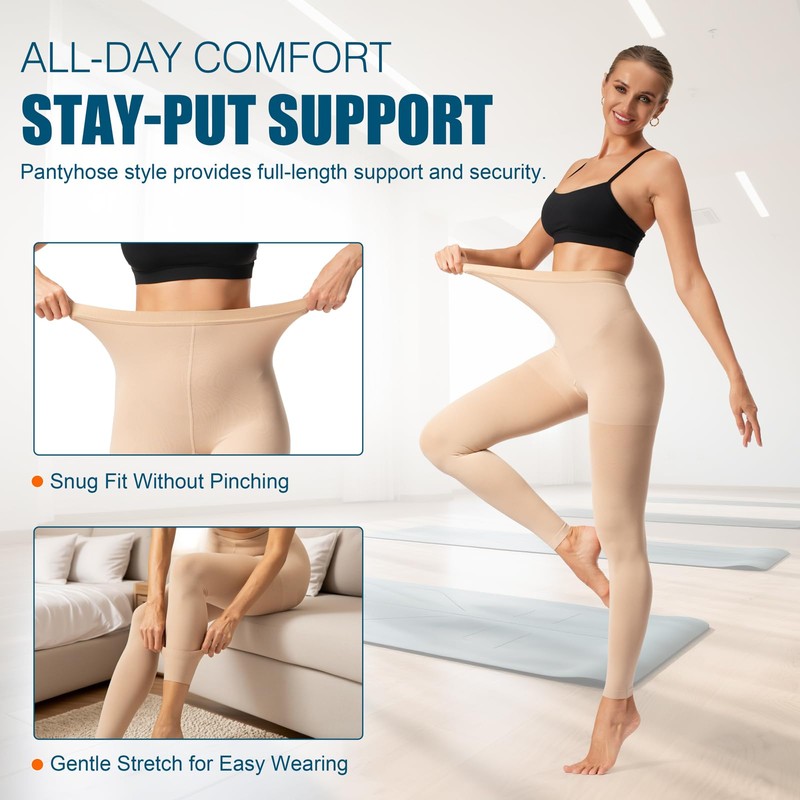 - ✅PROFESSIONAL MEDICAL PROGRESSIVE COMPRESSION: Compression pantyhose provides precise medical grade II 20-30mmHg gradient pressure science to promote lower limb blood return, professional relief of varicose veins, postoperative thrombosis risk. Pressure is applied from the ankles and gradually decreases.Effectively promote leg blood circulation, relieve leg swelling and fatigue caused by standing and sitting for a long time.