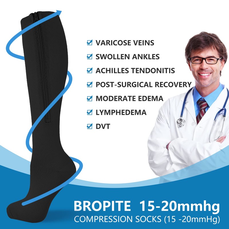 • ✅ HIGH QUALITY WORTH YOUR EVERY PENNY - To prevent deep vein thrombosis in patients with long-term bed rest . For standing for a long time, sitting and heavy physical work, the compression socks can reduce the discomfort of the lower limbs and prevent varicose veins of the lower limbs. For people who love beauty.Zipper compression stockings also have the function of shaping beautiful legs, to prevent the fat on the legs from being pulled down, and even have the effect of thin legs.