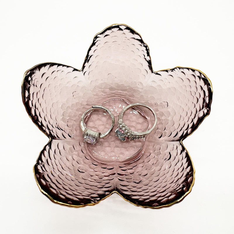 - ELEGANT DESIGN: Beautiful crystal glass jewelry dish featuring a delicate flower pattern, perfect for displaying and organizing rings, earrings, and small trinkets