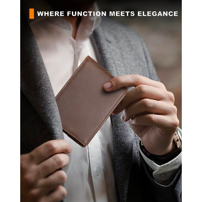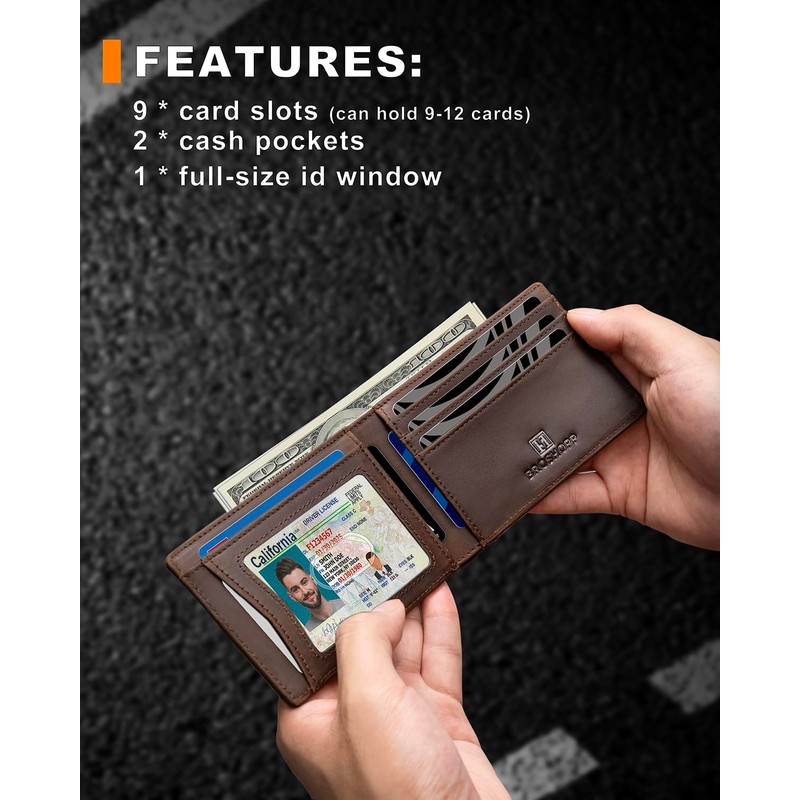 BROSHOPP Wallet for Men, Leather Bifold Men's Wallet with RFID Blocking, Cash Slots, ID Window