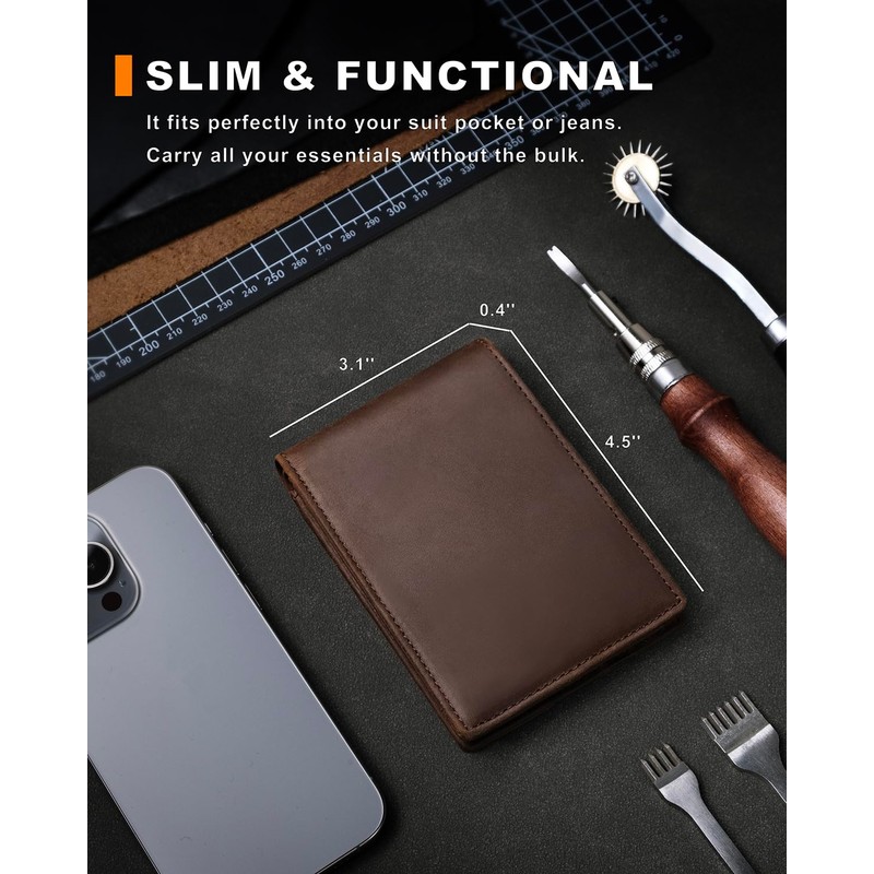 - Full-Grain Leather Wallet– Made from premium full-grain leather, this wallet features a rich texture and natural grain. Built to last, it develops a beautiful patina over time, offering a timeless, high-end feel.