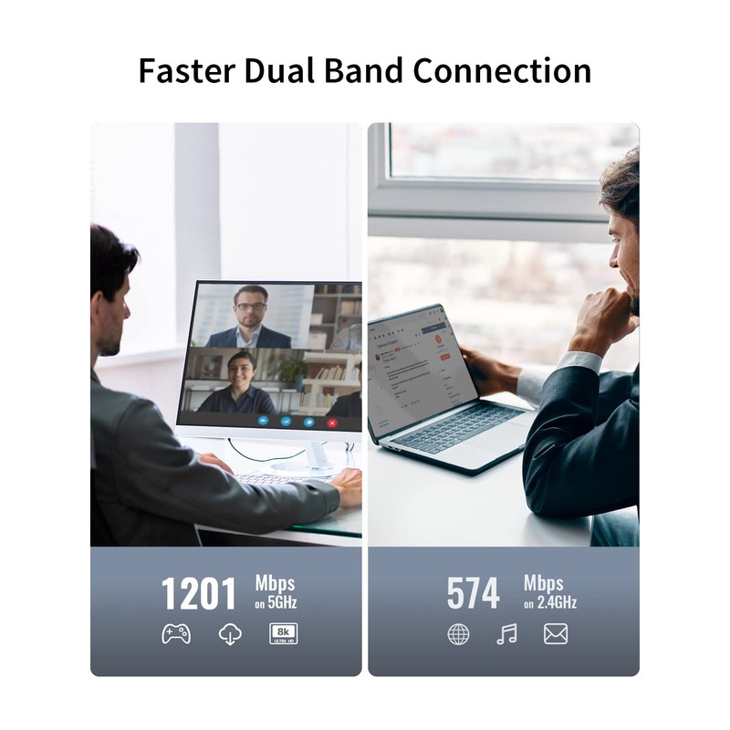 - Faster Dual Band WiFi: This Linux WiFi adapter delivers super-fast speed of 1201Mbps on 5GHz or 574Mbps on 2.4GHz. Improved dual-band connection gets your Linux devices ready for streaming, gaming and downloading without dropouts
