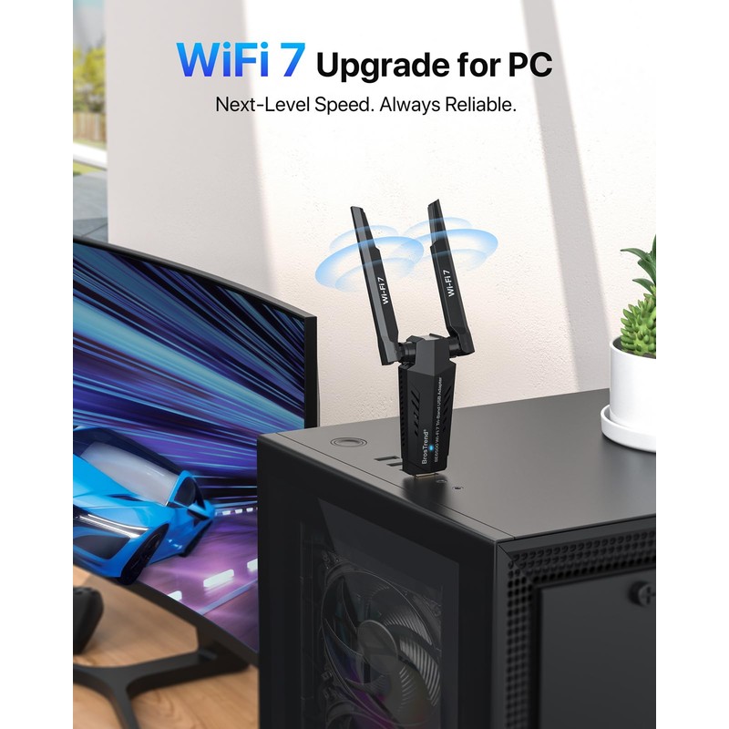 - One Adapter, Every Scenario: This WiFi 7 USB adapter delivers uncompromised performance for competitive gaming, demanding multitasking, and seamless 4K/8K streaming. It fully unleashes today’s top-tier internet speeds and is ready for what’s next