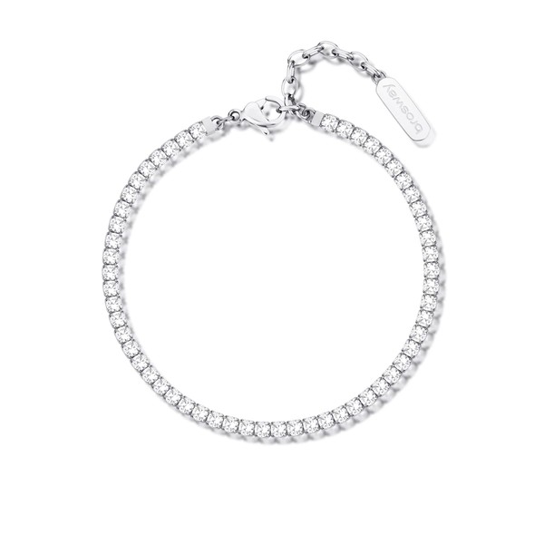 - An elegant stainless steel tennis bracelet, decorated with sparkling cubic zirconia that embodies timeless elegance