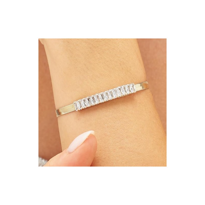 - Snake chain bracelet in 304 steel, 14K gold pvd finish and cubic zirconia.