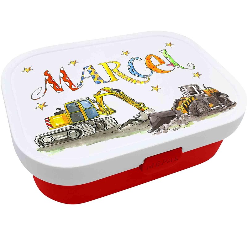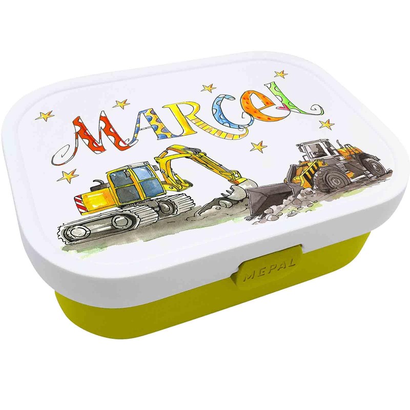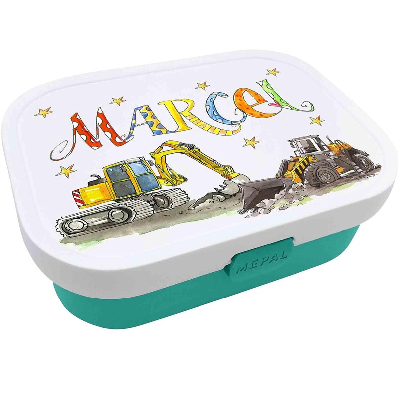 Brotdose Radlader Bagger mit Namen, incl. Trennung und Gabel, Rosirosinchen