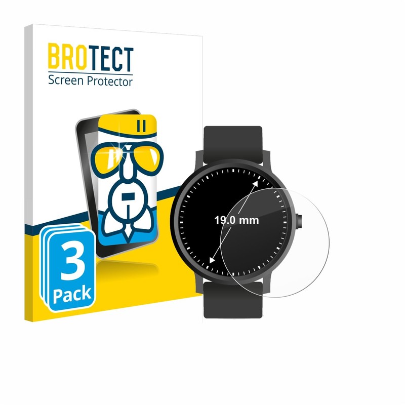 BROTECT Protective glass for wristwatches (circular, diameter: 19 mm) (pack of 3) protective film tempered glass [extremely scratch resistant 9H, anti-fingerprint]