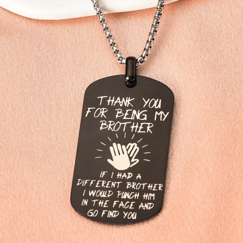 - Exquisite Necklaces for Brothers: The black tag necklace is exquisitely designed, engraved with "Thank you for being my brother, if I had a different brother, I would punch him on the face and go find you" , displaying your deep friendship