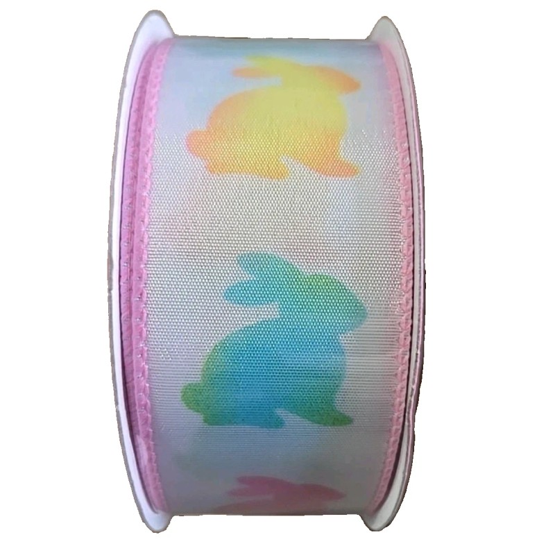 Celebrate the season with the charming pastel colors and adorable bunny rabbits of this Easter-themed ribbon. Ideal for adding a festive touch to your crafting projects, the sheer polyester fabric ribbon from Brother Sister Design Studio measures 1.5 inches in width and comes on a convenient spool for easy storage and use.