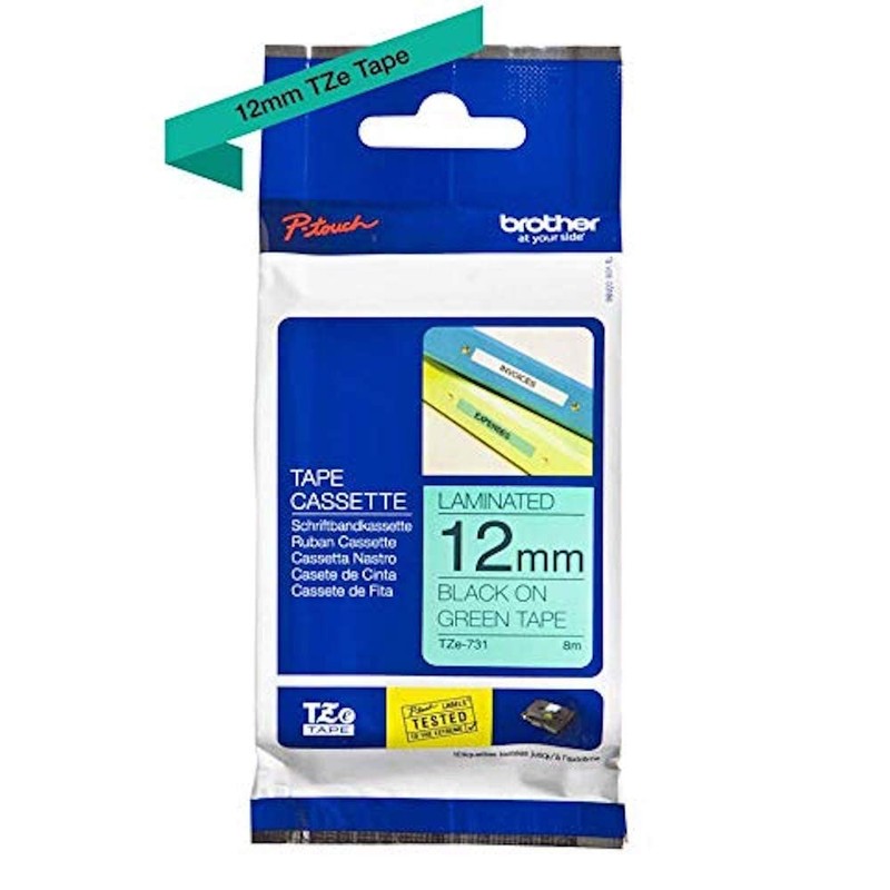 - BROTHER Original: TZE731 | Brother original laminated tape | black on green