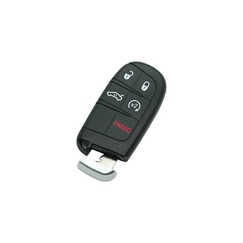 BROVACS Key Shell + Uncut Blank Emergency Key Compatible with Dodge Chrysler Jeep 5 Buttons Smart Keyless Entry Remote Key Case Fob 4 BTN + Panic PG756F