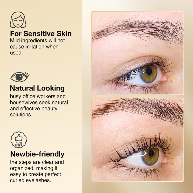 - GENTLE FORMULA FOR SENSITIVE EYE AREAS: Specially developed for delicate lash and brow zones, our low-irritation eyelash lift kit formula undergoes rigorous safety testing to minimize the risk of redness or discomfort. Free from harsh Matter, it works harmoniously with sensitive skin—ideal for contact lens wearers and those with reactive eye areas. Trusted by beauty professionals, the gentle formula nourishes while lifting, leaving lashes soft and healthy post-treatment