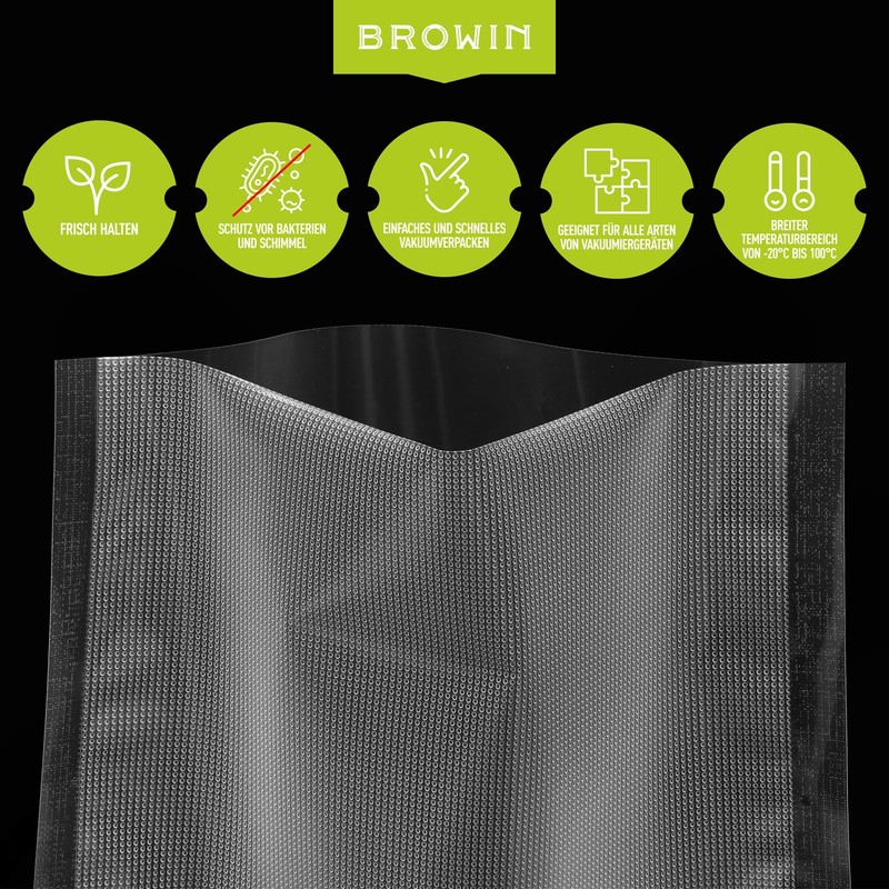 - High quality: our BROWIN moletised bags are specially designed to effectively vacuum food and keep it fresh. Perfect for use with your vacuum sealer