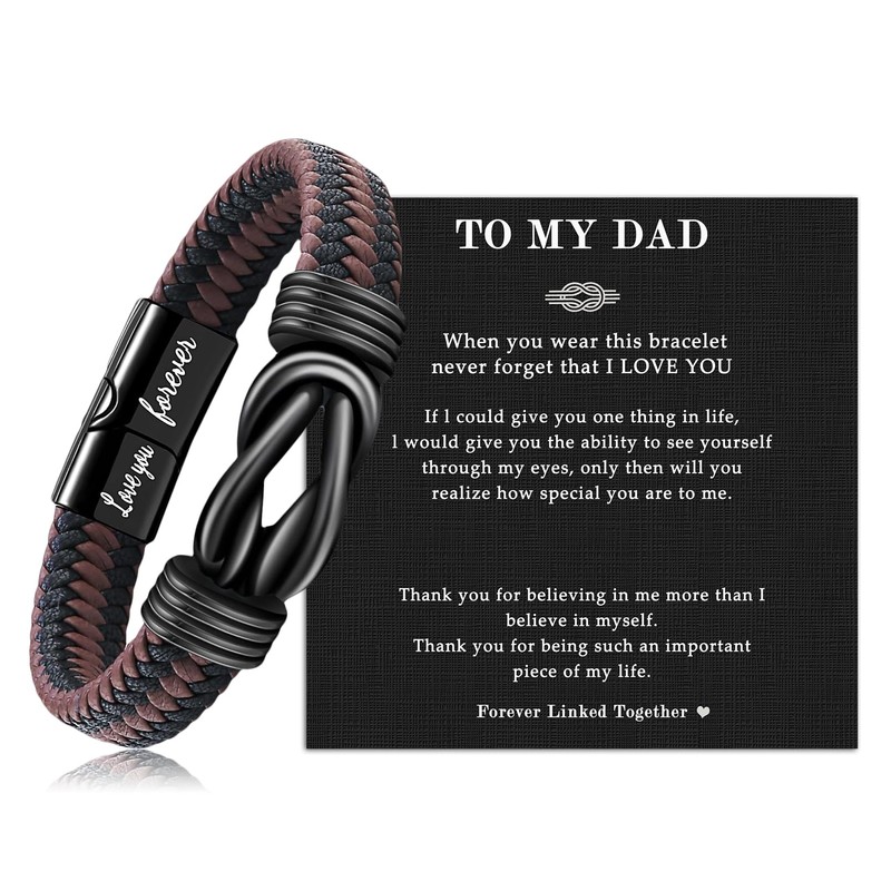 - 【Special Gift for Dad】 The brown braided leather bracelet has an engraved with the "Love you forever" words engraved on it. This blessing card represents your love for Dad. This is a very suitable special gift for Daddy.