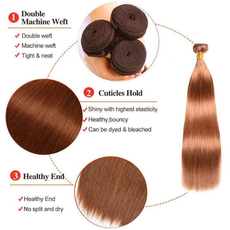 • Straight Bundles Human Hair: Brown is a versatile color suitable for all skin tones. You can change your hairstyle according to your personal preferences.