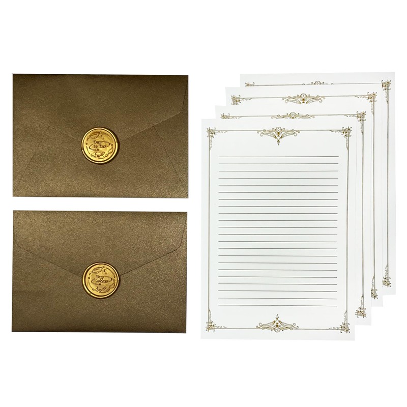 Brown Envelopes with Gold Wax Seals sticker 2pcs and 4 Writing Sheets Station...