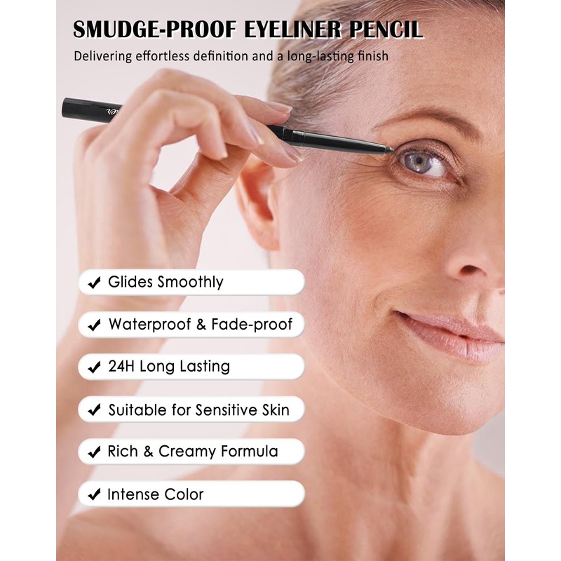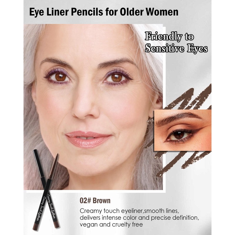 - Gel Cream Eyeliner Pencil - Our waterproof gel liner with built in sharpener have a creamy texture, intense color which can be used to create a variety of eye makeup styles. And the brown & black are classic colors which is suitable for older women. Meanwhile, our eyeliners are gentle, and safe for sensitive eyes of older women plus.