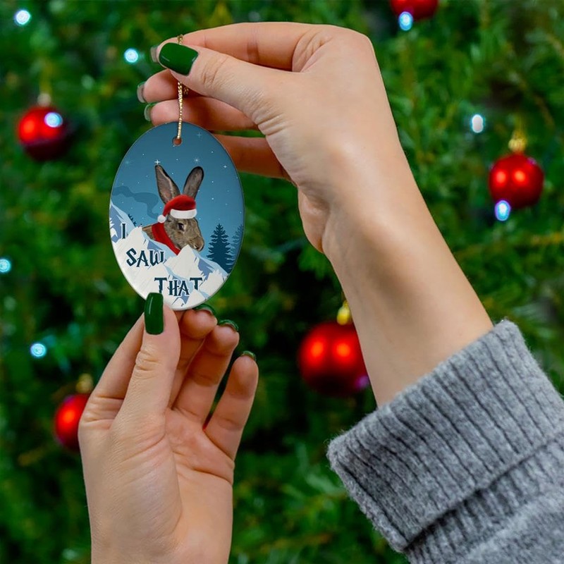 Brown Flemish Giant Rabbit Christmas Ornament 2024 Oval Ceramic - Funny Saying I Saw That Gifts for Rabbit Lovers