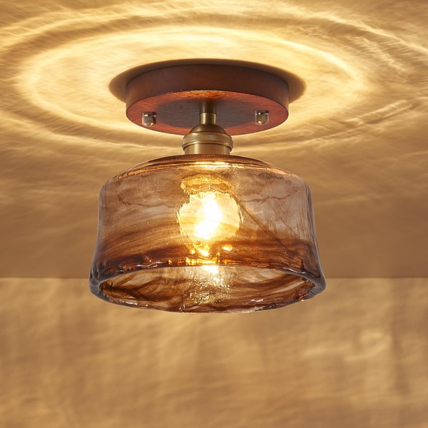 - 【Natural Wood, Pure Brass & Premium Brown Thick Glass】 - Base crafted from natural rubberwood, polished & cut for premium finish; pure brass connectors & holder ensure durability. Thick explosion-proof glass lampshade in brown tea hue, fired to perfection. Designed for semi flush mount ceiling light, blending luxury with stunning illumination.