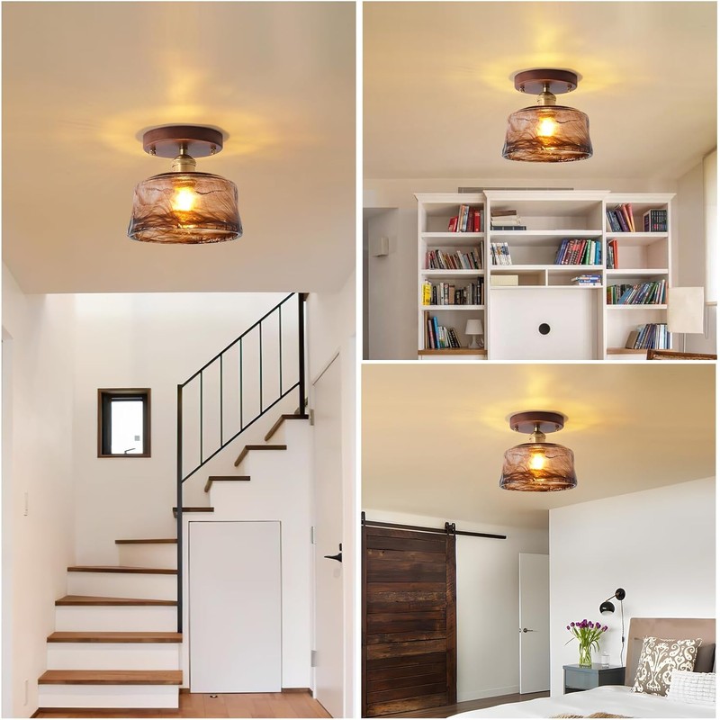 - 【Compact Exquisite Lighting】 - Crafted from natural wood, brass, & thick explosion-proof glass via intricate processes, available in compact sizes ideal for entry way lighting fixtures ceiling, hallways, corridors, porches, & small rooms.